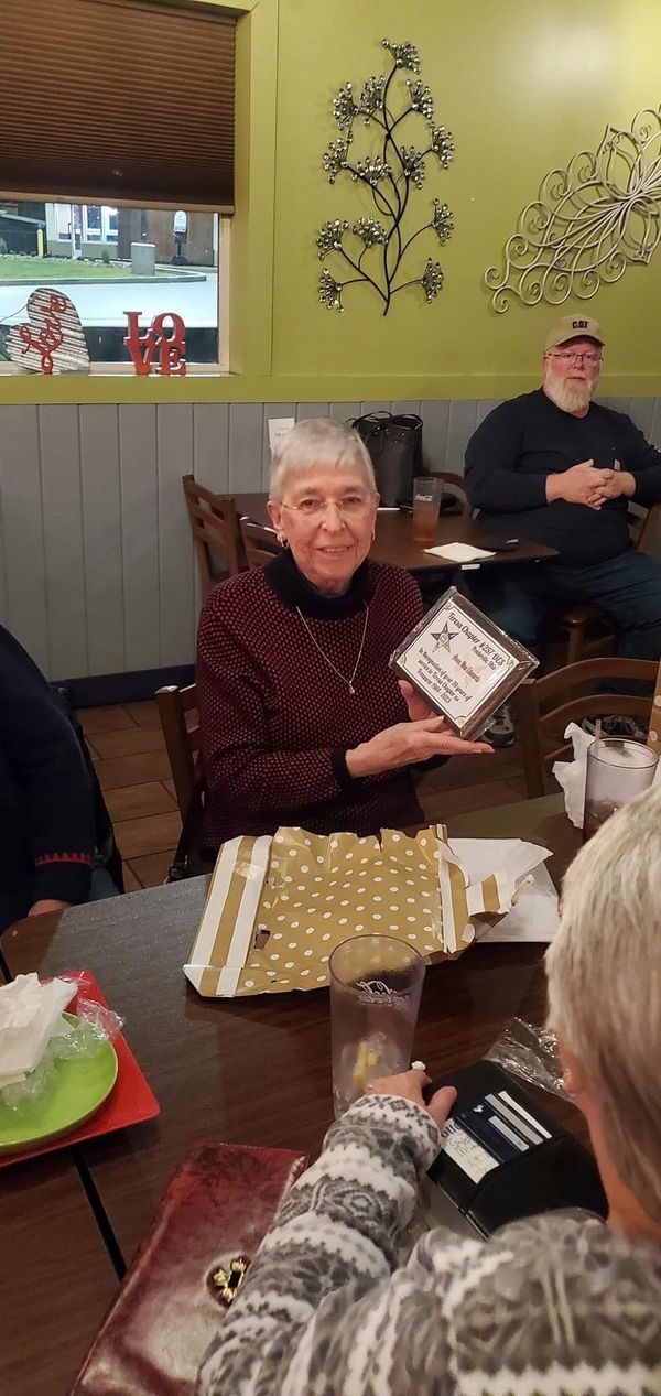 Anna Mae Edwards 39 years of service to Teresa chapter as treasurer.